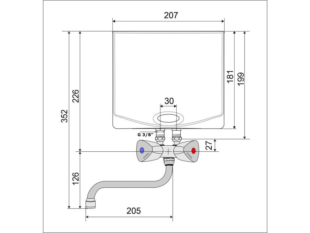 Pre jednoduchší nákup je el. prietokový ohrievač vody HAKL MK SET dodávaný spolu s vodovodnou beztlakovou nástennou drezovou klasickou batériou HAKL, s dĺžkou výtokového ramienka 20 cm.