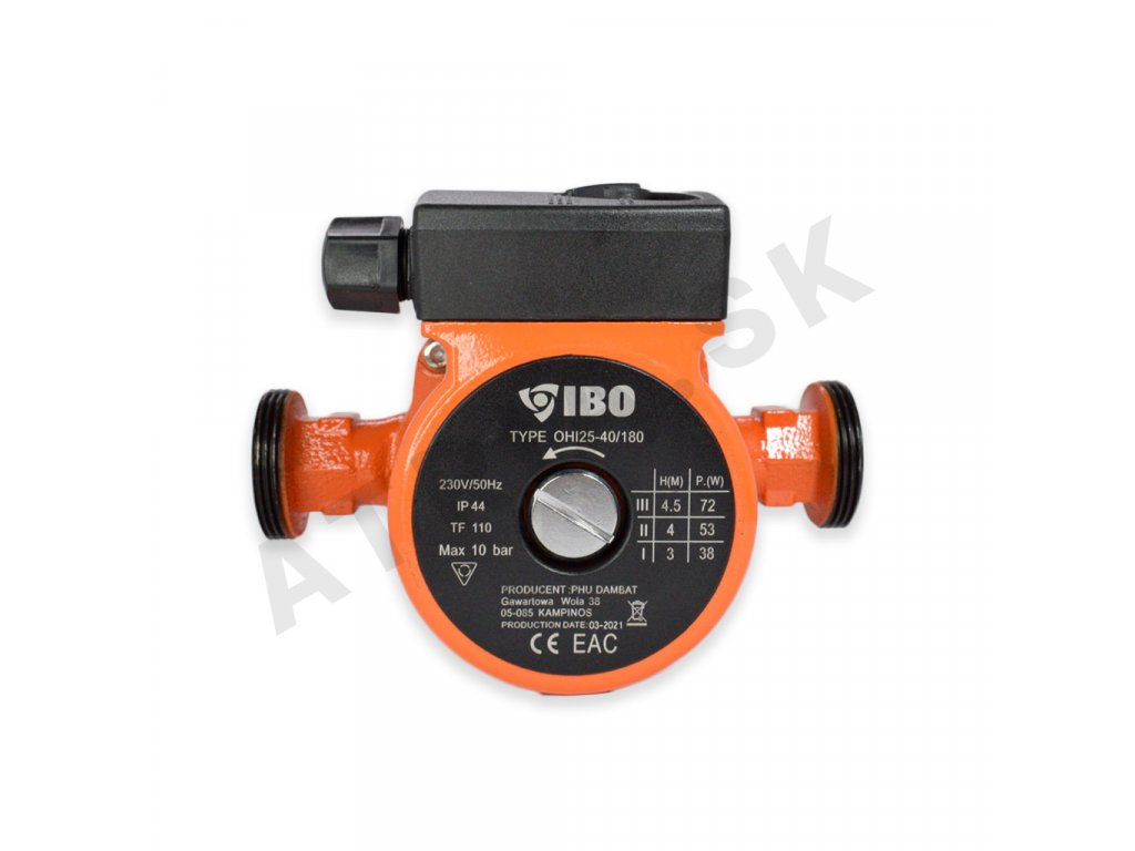 Čerpadlá IBO Ohi sú vybavené prepínačom 3 rýchlostí mechanického otáčania rotora motora, čím sa zabezpečuje optimálna spotreba elektrickej energie v závislosti na špecifických podmienkach v dome. Toto obehové čerpadlo je určené na vodu.