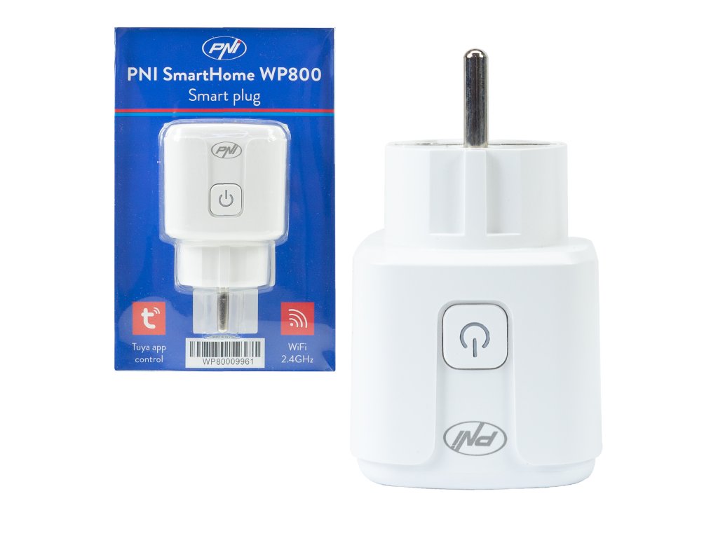 Inteligentná WiFi zásuvka PNI SmartHome WP800, ovládanie cez internet, aplikácia Tuya Smart, kompatibilná s Amazon Alexa a Google Home, meria spotrebu energie