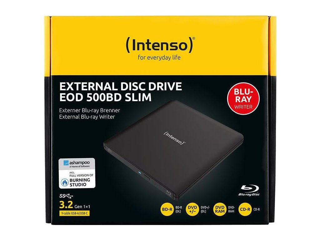 Súčasťou dodávky je Y-kábel (Micro-B na USB-C a USB-A) a plná verzia softvéru Ashampoo Burning Studio pre jednoduché zálohovanie dát, tvorbu médií a archiváciu. Elegantný dizajn (142 × 148 × 16 mm) a nízka hmotnosť len 250 g robia z EOD 500BD Slim mimoriadne praktické zariadenie. Vďaka modernej technike a robustnému krytu je ideálnym riešením pre profesionálne ukladanie dát a prehrávanie médií.