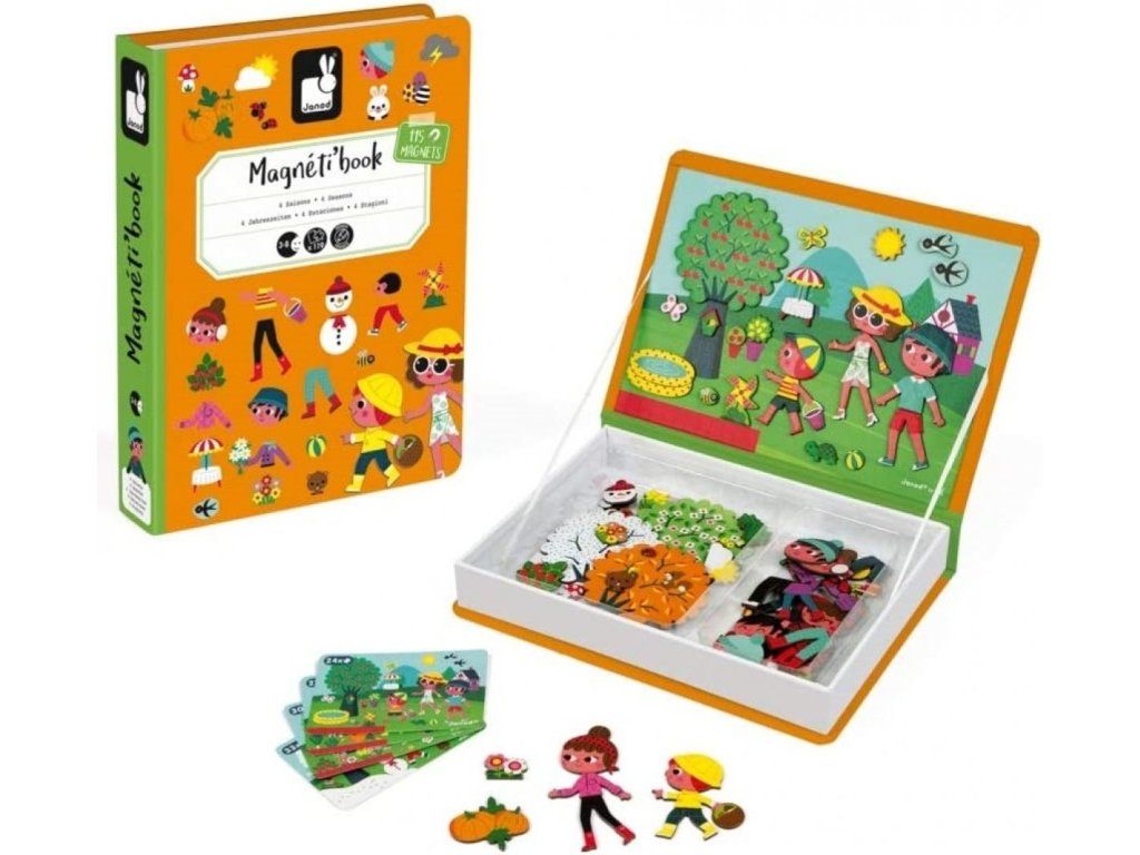 Magnetická kniha - úžasná naučná hračka! Zabavte vaše děti skládáním obrázků z magnetických dílků podle předlohy. Děti hádají roční období a skládají scenérii tohoto období s vhodným oblečením a doplňky. Praktické balení zajistí, že se hračka dá pohodlně přenášet. Děti se s ní zabaví nejen doma, ale i na dlouhých cestách. Magnetická kniha pro děti je krásná nadčasová hračka pro každé dítě, která se bude líbit několika generacím a je vyrobená z kvalitních materiálů a zdravotně neškodných barev. Balení obsahuje 4 kartičky s předlohami a 115 magnetických dílků. Vhodné pro děti od 3 let.Dodatočné parametre