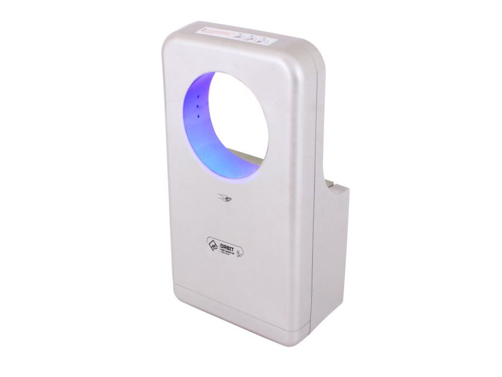 Kruhový dizajn, absorpčný kameň a možnosť použitia na toaletách pre hendikepovaných, robia z Jet Dryer ORBIT úplne jedinečný sušič. Ruky sú vďaka tornádo efektu suché do siedmich sekúnd. Vďaka tomu, že sa inštaluje vyššie, než ostatné tryskové sušiče, môžete ho dobre využiť aj na priestorovo atypických umyvárňach. Rovnako ako ostatné sušiče, vám Jet Dryer ORBIT pomôže znížiť prevádzkové náklady a navyše chránite prírodu.