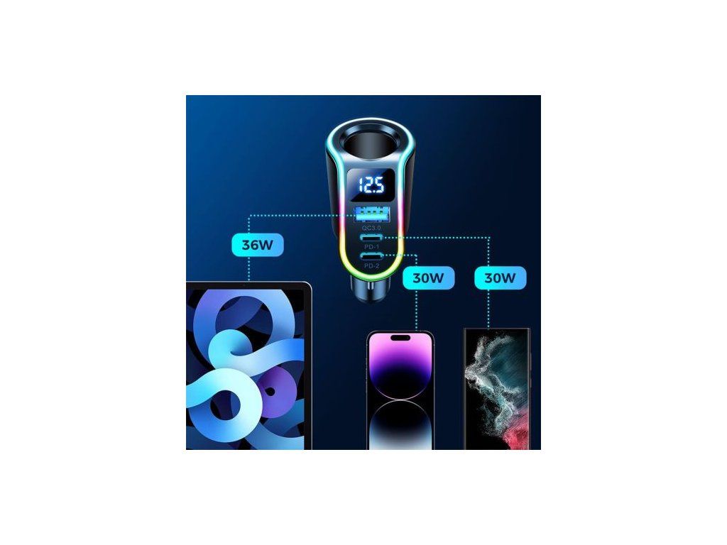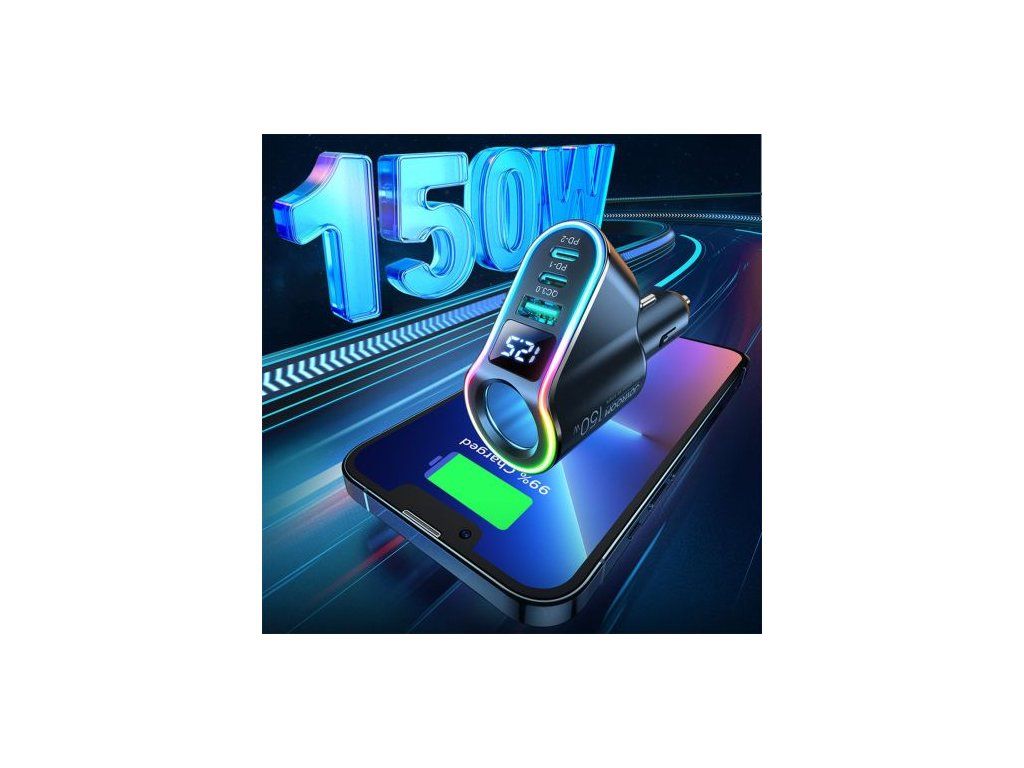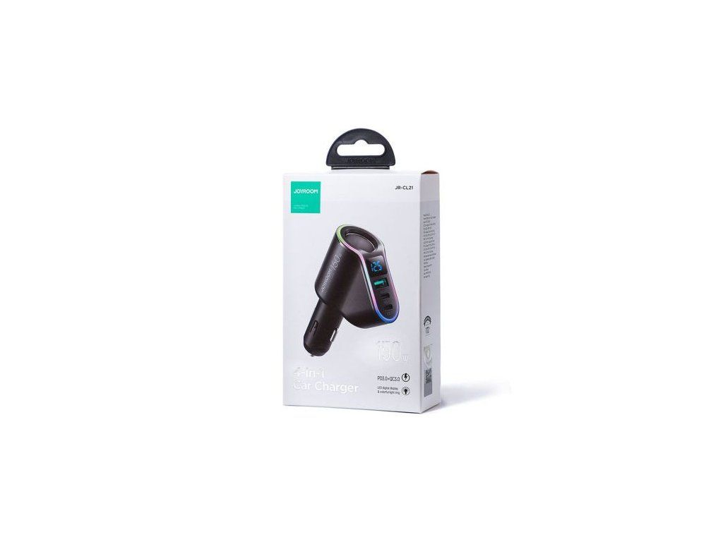 Joyroom Car Charger 4-in-1, Bluetooth Fm Transmitter C+C+U+Cigarette, PD 150W, Black (JR-CL21)