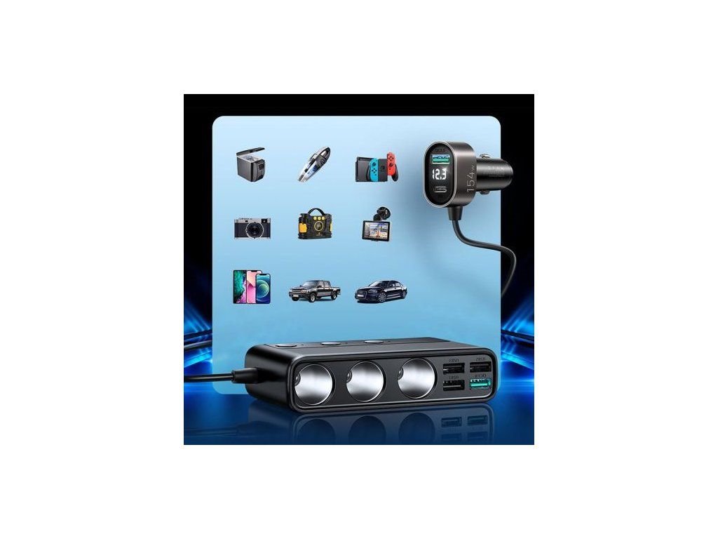 - Your vehicle gains new possibilities. In addition to connecting devices to the USB ports, you can use 3 additional cigarette lighter connectors. This charger can work with a load of up to 154W!