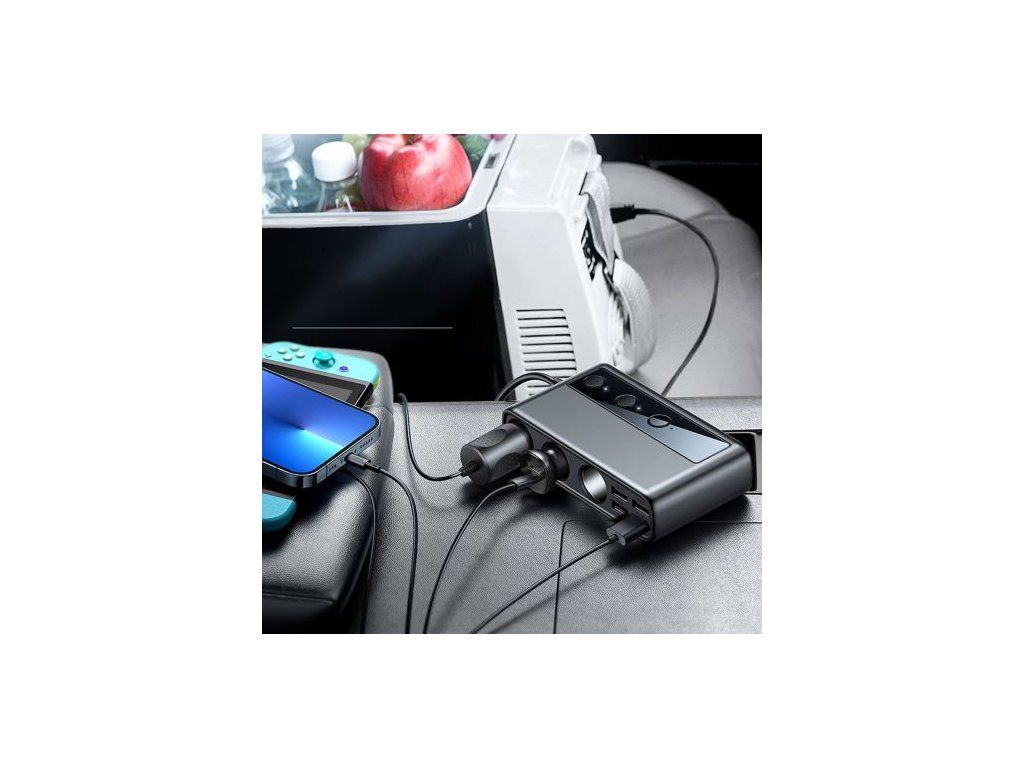 3-in-1 car charger, up to 5 additional USB ports, as well as 1 type C input can power your devices at the same time . They can cooperate with the camera recording the route, seat heaters, vacuum cleaner, mobile refrigerator at the same time. All this at an express pace.