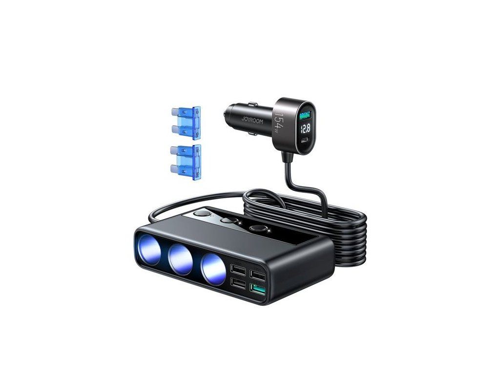 Joyroom Car Charger 9-in-1, (C+U+U+U+U+U+ 3 cigarette lighter socket) 154W, Black (JR-CL06)