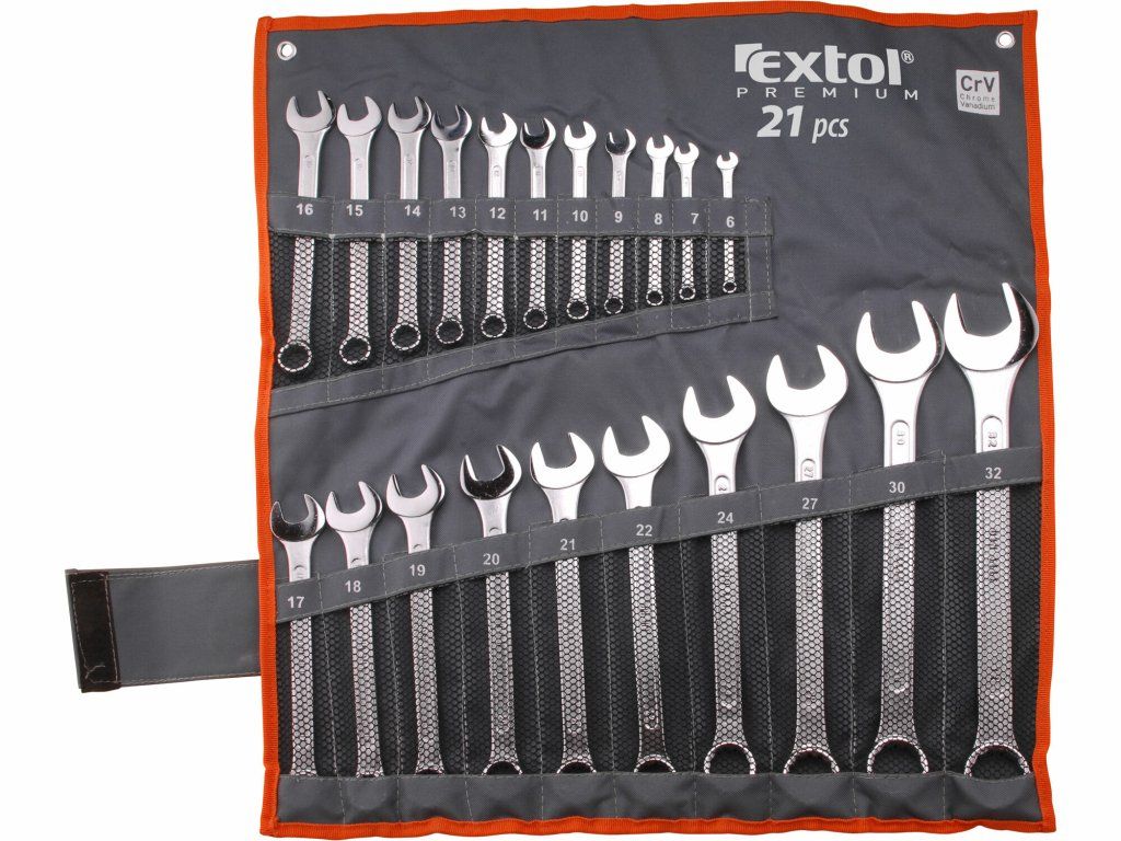 Kľúče očko-vidlicové 6-32mm, sada 21ks, nylonové puzdro, CrV, EXTOL PREMIUM