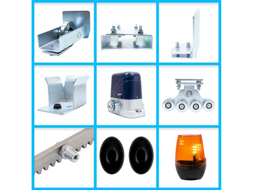 Kompletná automatizačná sada pre samonosné brány PNI AP800D motor, kolieska, fotobunky, diaľkové ovládanie, lampa, 6 metrov ozubeného stojana, koľajnica 3x2 m pre užitočný otvor 4-5 m, posuvná brána 2