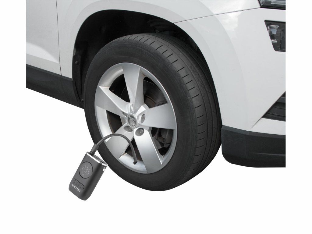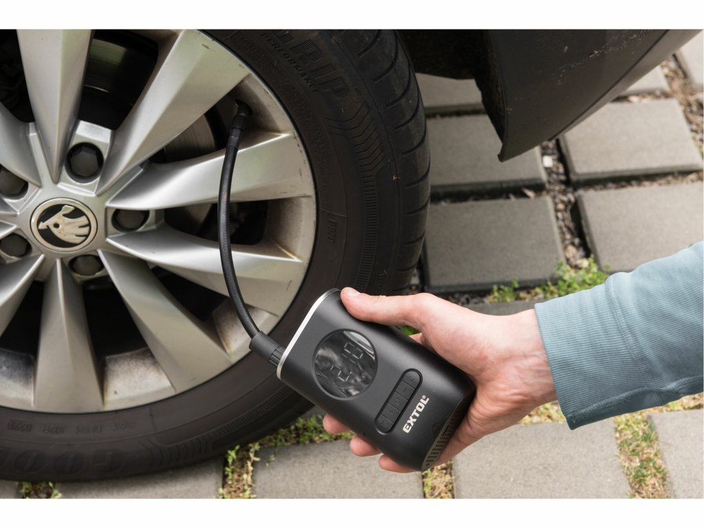 Akumulátorový cestovný kompresor je určený na kontrolu a hustenie pneumatík bicyklov, motoriek a osobných automobilov alebo na nafúknutie športových lôpt, nafukovacích ležadiel, matracov a pod. Na kompresore stačí nastaviť požadovaný tlak alebo si zvoliť niektorú hodnôt, spustiť hustenie a potom si len počkať, kým sa kompresor sám vypne. Vďaka kompaktným rozmerom a nízkej hmotnosti sa dá ľahko pribaliť so sebou na cesty. Podsvietený displej a LED svietidlo, ktoré je možné zapnúť samostatne a nezávisle na kompresore, uľahčujú používanie kompresora v tme. Po jednej minúte nečinnosti sa kompresor sám vypne. Nabíjanie cez USB-C konektor pomocou sieťovej alebo 12V nabíjačky umožní mať kompresor vždy nabitý.- automatické vypnutie hustenia pri dosiahnutí nastaveného tlaku