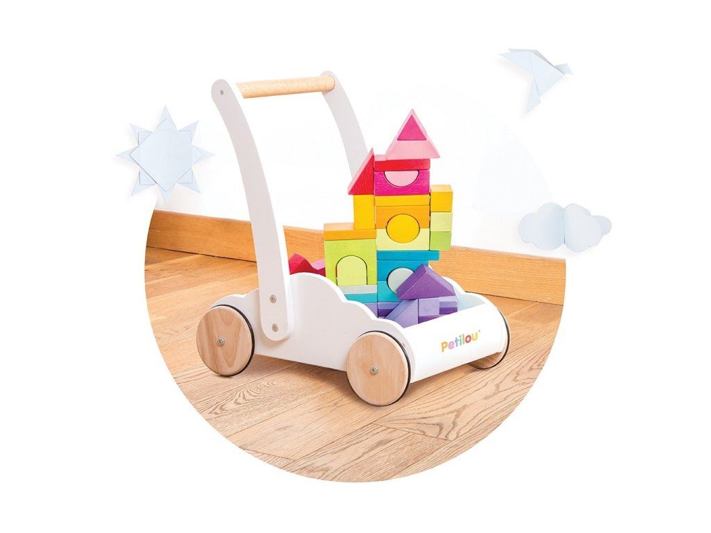 Perfektná hračka pre batoľatá, ktoré sa učia chodiť. Unikátne chodítko v tvare mráčika je vybavené 45 kockami z kaučukového dreva, tie sú maľované farbami dúhy. Vozík ako chodítko deti podporí fyzicky aj mentálne. Pri tréningu chôdze dodá sebaistotu a stabilitu. Tradičné dúhové kocky rôznych tvarov zase pomôžu s rozvojom priestorovej predstavivosti, zručnosti a motoriky. Hračky s účelomVšetky hračky firmy Le Toy Van sú vyrobené s cieľom - aby dlho vydržali. Dizajnované s láskou skúsenými remeselníkmi za použití etických praktík a udržateľných materiálov, ktoré sú láskavejšie k našej planéte. Hlavné vlastnosti: vyrobené eticky z udržateľného drevatestované podľa najprísnejších štandardovmaľované netoxickými farbami na báze vodyinšpiruje k predstavivej hrerozvíja kognitívne zručnostihračka bez obsahu plastu Ocenenia hračky:Good Toy Guide RecommendedJunior Design Silver Award 2018 Petilou kolekcia: Kolekcia pre dojčatá a batoľatá od Le Toy Van obsahuje hlavne hmatové hračky, ktoré majú najmenším poslúžiť aj ako učebné prostriedky. Kolekcia je inšpirovaná prírodou okolo nás a je navrhnutá tak, aby rozvíjala zmysly detí pomocou rozdielnych zvukov, textúr, tvarov a hmotností. Deti tak od malička zapoja všetky svoje zmysly. V kolekcii nájdete napríklad skladačky, vkladačky, chodítka, …Dodatočné parametre