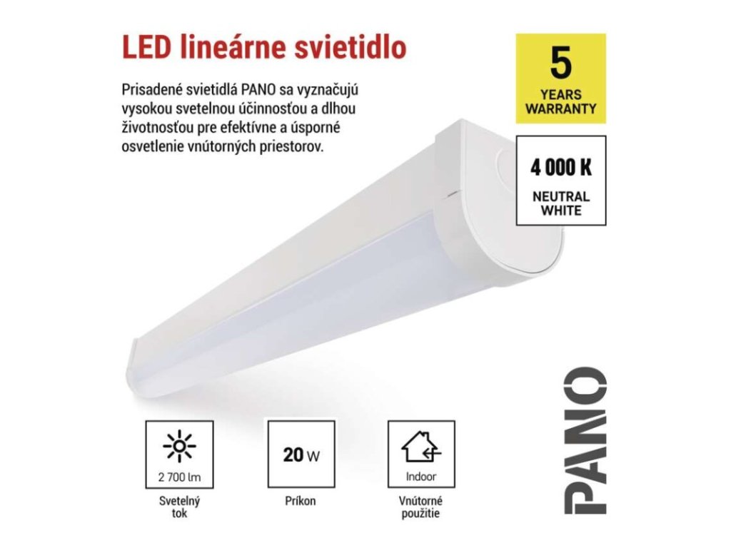 LED lineárne svietidlo PANO 20W, neutrálna biela