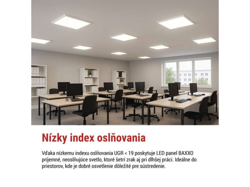 LED panel BAXXO 60×60, štvorcový prisadený biely, 36W neutr. biela