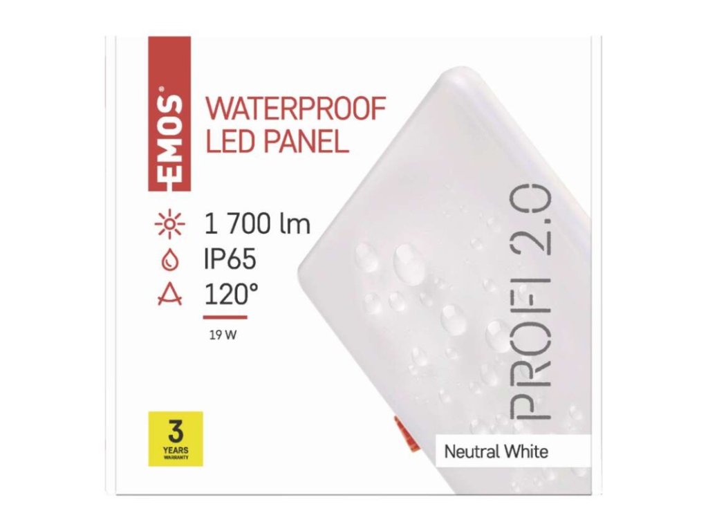 LED panel VIXXO 185×185, štvorcový vstavaný biely,19W neut.b.,IP65