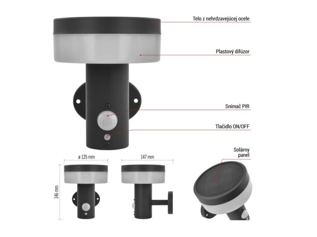 LED záhradné solárne nástenné svietidlo TERION, senzor súmraku, 12,5 x 14,7 x 14,2 cm