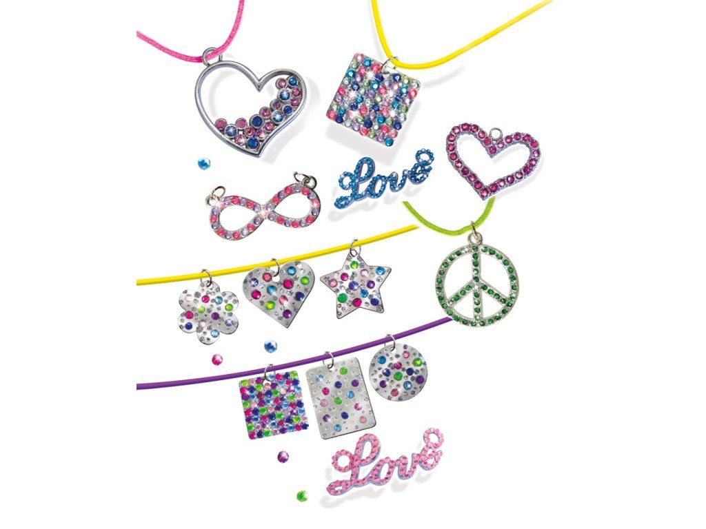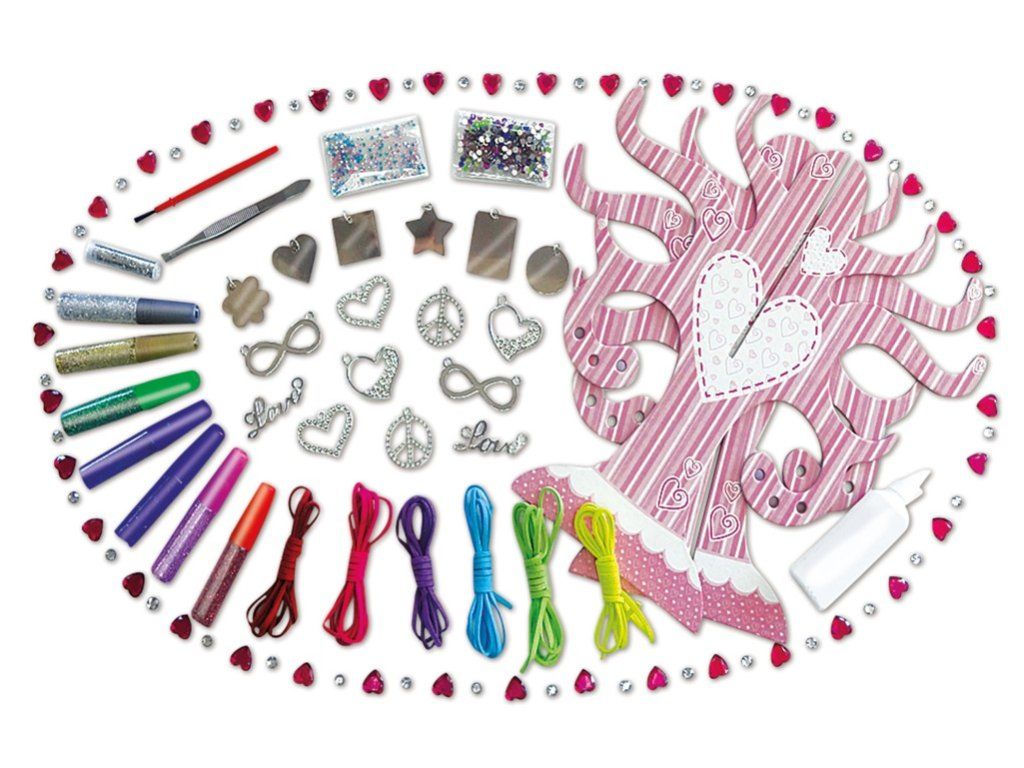 Výtvarná sada určená najmä všetkým princeznám a parádniciam, ktoré túžia po vlastnoručne vyrobenom šperku. Nechajte deti zábavne zdokonaľovať svoje schopnosti a zostavovať šperky podľa priloženého návodu, alebo za použitia vlastnej fantázie. S pomocou potrieb dodávaných v sade je to tak jednoduché! Súprava obsahuje:16 kovových štítkov rôznych tvarov, 6 farebných povrázkov zo syntetickej kože, viac ako 650 kamienkov, 8 fľaštičiek s trblietkami, 1 fľaštičku lepidla, štetec, pinzetu a kartónový šperkový strom (24x23,5 cm). Hlavné vlastnosti: rozvíja kreativitu a vyjadrovacie schopnostipraktické balenieDodatočné parametre