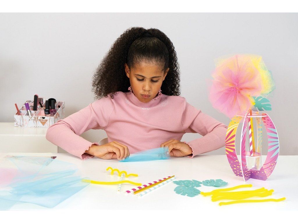 Kreatívna sada Trblietavé kvety potešia všetkých milovníkov dekorácií a tvorenia. Deti si môžu vlastnoručne vytvoriť originálnu kyticu s vázou, ktorú následne môžu vyzdobiť svoju izbičku alebo darovať ako milú pozornosť. Sada obsahuje všetko potrebné na výrobu farebných trblietavých kvetov – tylové látky v pastelových farbách, ozdobné slamky ako stonky, papierové listy a štýlovú vázu na dotvorenie. Stačí zapojiť fantáziu a pustiť sa do skladania a aranžovania podľa vlastného vkusu. Výsledkom je krásny a jedinečný doplnok, ktorý nikdy neuvädne. Skvelá sada pre deti, ktoré si chcú vytvoriť vlastnú designovú dekoráciu a užiť si radosť z tvorenia. Hlavné vlastnosti: kreatívna sada na výrobu trblietavých tylových kvetovobsahuje všetko na výrobu dekoratívne vázypodporuje jemnú motoriku a estetické cíteniejednoduché tvorenie s efektným výsledkomideálny ako darček pre malé tvorkyvhodné pre deti od 8 rokovDodatočné parametre