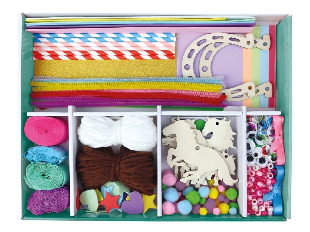 Kreatívny kufrík s motívom koní poteší všetkých malých milovníkov tvorenia aj zvierat. Táto bohatá sada obsahuje 400 dielikov, vďaka ktorým si deti môžu vyrábať vlastné obrázky, dekorácie a originálne výtvory podľa svojej fantázie. Vnútri kufríka nájdete pestrú škálu výtvarných potrieb, ako sú farebné papiere, penové gumové dieliky, chlpaté tyčinky, kamienky, pohyblivé oči, pomponky, krepový pásik, drievka na tvorenie (nanukové) a mnoho ďalšieho. Praktické balenie v kufríku umožňuje ľahké usporiadanie aj prenášanie, takže si deti môžu tvorenie užiť kdekoľvek. Ideálna sada pre deti, ktoré rady tvoria a chcú si vytvárať vlastný farebný svet plný nápadov. Hlavné vlastnosti: obsahuje 400 kreatívnych dielikovmotív koníširoká škála materiálov pre rôzne výtvarné technikypraktický kufrík na uloženie a prenášaniepodporuje kreativitu, fantáziu a jemnú motorikuvhodné pre deti od 5 rokovDodatočné parametre