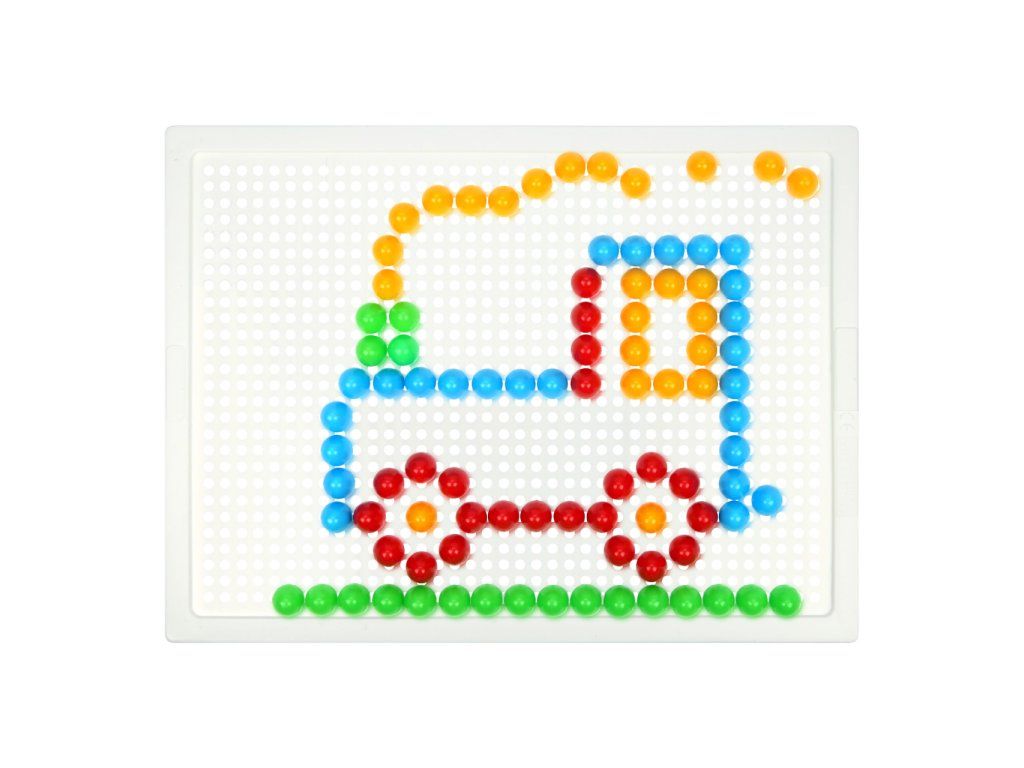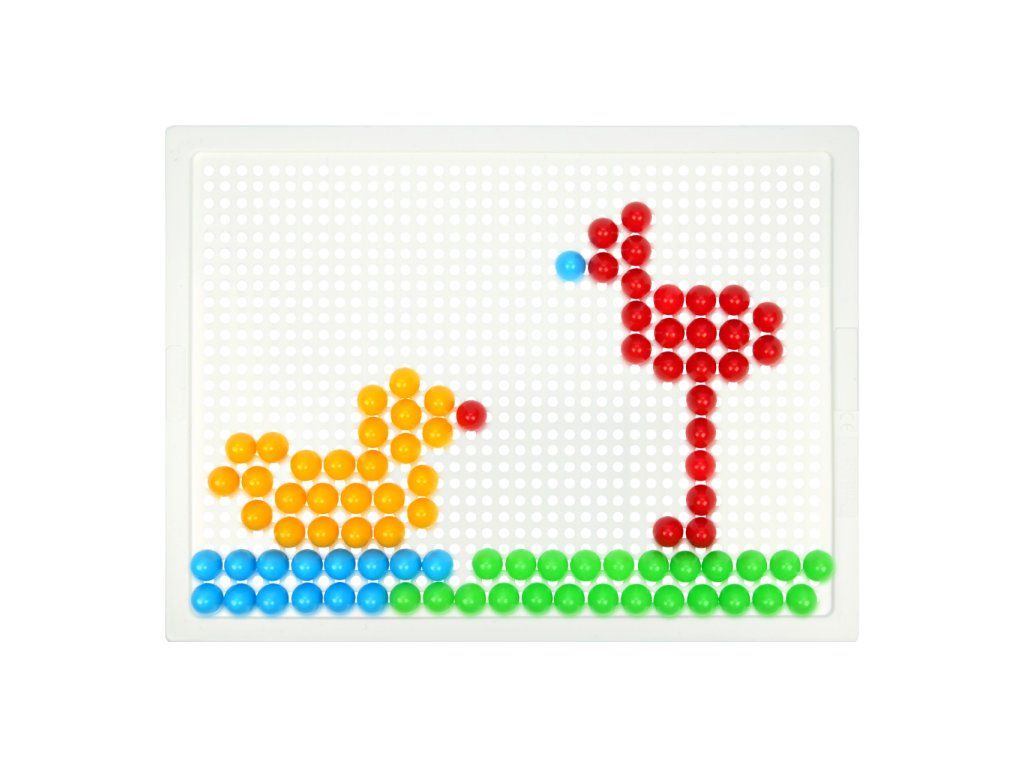 Vytvárajte pestré obrázky vkladaním štipcov do dierovanej dosky. Pomocou mozaiky môžu deti rozvíjať svoju fantáziu, sústredenie a jemnú motoriku. Súprava obsahuje dosku a sadu malých kolíčkov v plátenom vrecúšku s motívom chobotničky. Vyrobené z nezávadného a odolného plastu. Hlavné vlastnosti:doska s rozmermi 21×16 cm a 100 malých kolíčkovstredná obtiažnosťpraktické balenieDodatočné parametre