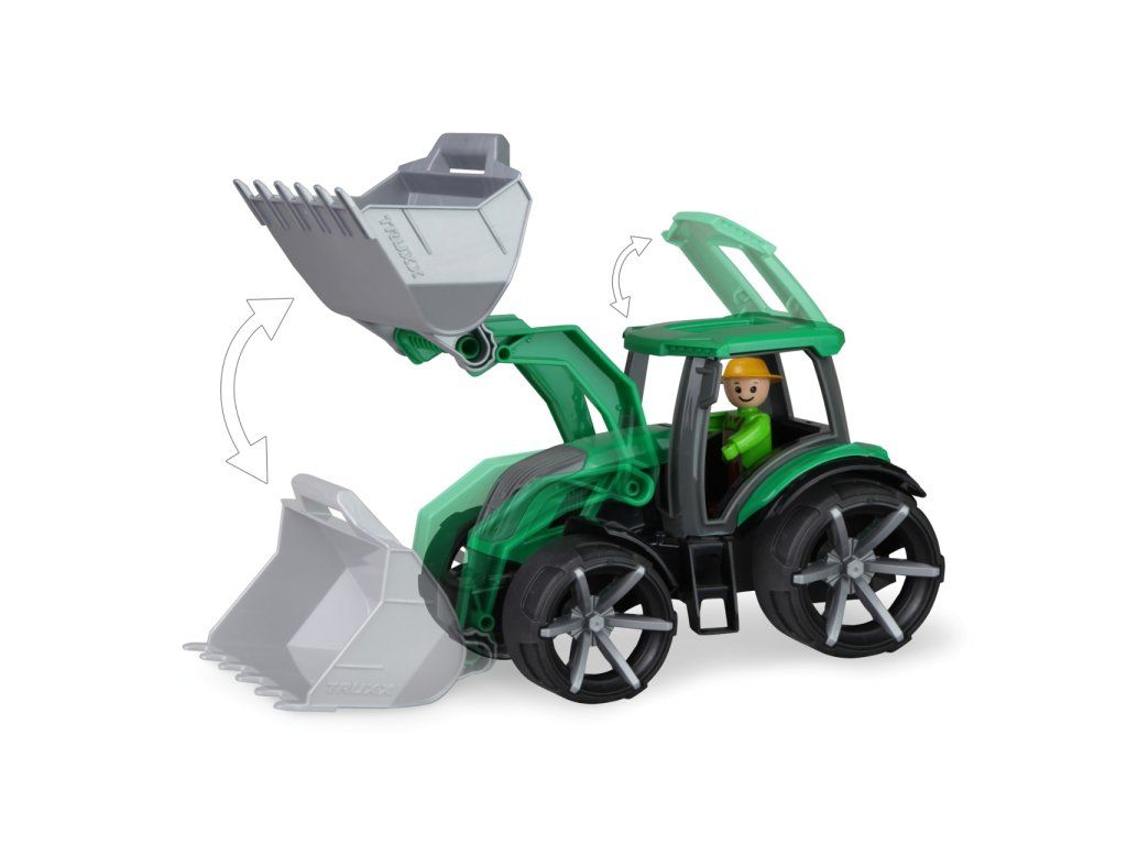 Atraktívny traktor zo série TRUXX 2 je veľmi pevný a odolný, vhodný aj na hranie vonku, na pieskovisku. Je vybavený figúrkou usmievavého vodiča a vďaka odklopnej streche je priestor kabíny ľahko prístupný hrám. Funkčná lopata je pre ľahkú manipuláciu vybavená madlom. Hračka je vyrobená z nezávadného plastu, dodávaná v pestrofarebnej krabici s priehľadom. Hlavné vlastnosti:figúrka vodiča, prístupná kabínafunkčná, ľahko ovládateľná lopatapevné a odolné prevedenieDodatočné parametre