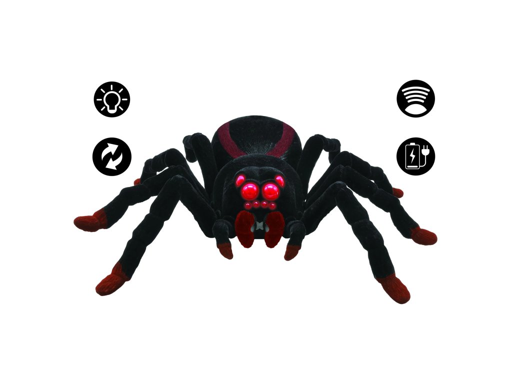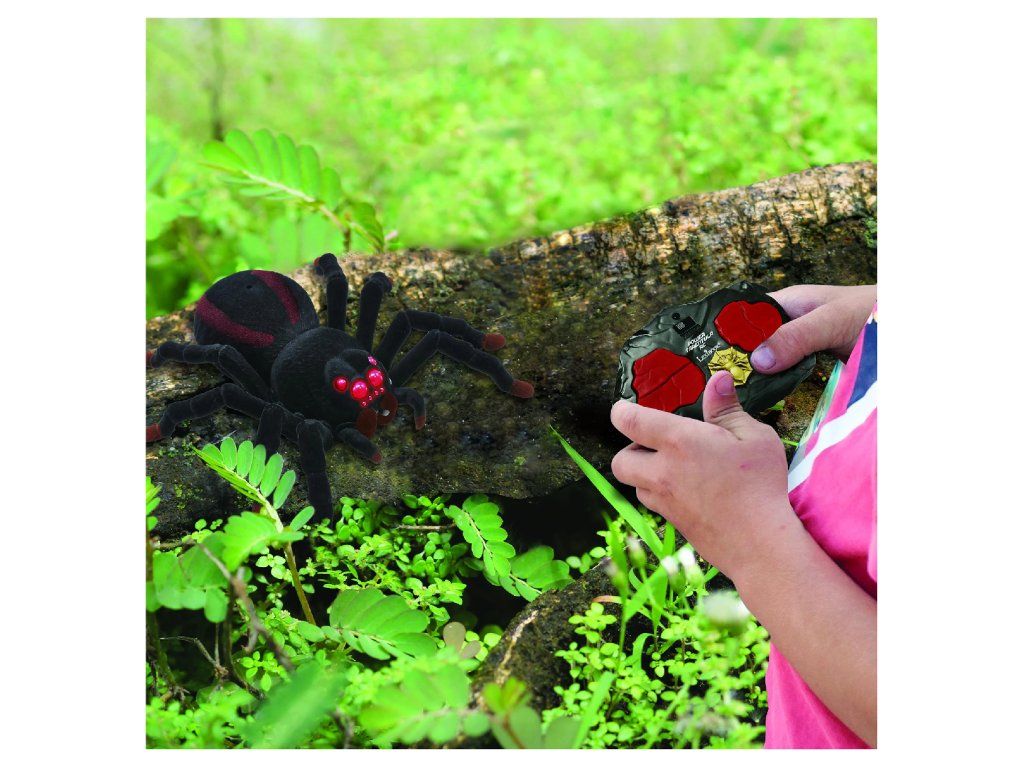 Táto tarantula s osmi chlpatými nohami, dvoma makadlami a dvoma kusadlami určite vzbudí množstvo emócií svojím realistickým pohybom a vzhľadom. Je ovládaná prostredníctvom 2,4GHz diaľkového ovládania, čo deťom poskytuje množstvo možností pre zábavu a hravé dobrodružstvo. Tarantula, s pôsobivými svetelnými efektmi v očiach, sa pohybuje štyrmi smermi – dopredu, dozadu, doľava a doprava a v automatickom demo režime začne behať bez nutnosti ovládania. Diaľkové ovládanie s flexibilnou anténou je intuitívne a prehľadné, takže deti môžu ľahko sledovať, kam sa pavúk presúva. Maximálna rýchlosť pohybu je 2,5 km/h. Záleží na deťoch, či budú chcieť ohromiť svojich najbližších alebo vystrašiť kamarátov, ale s touto tarantulou si rozhodne užijú množstvo zábavy.