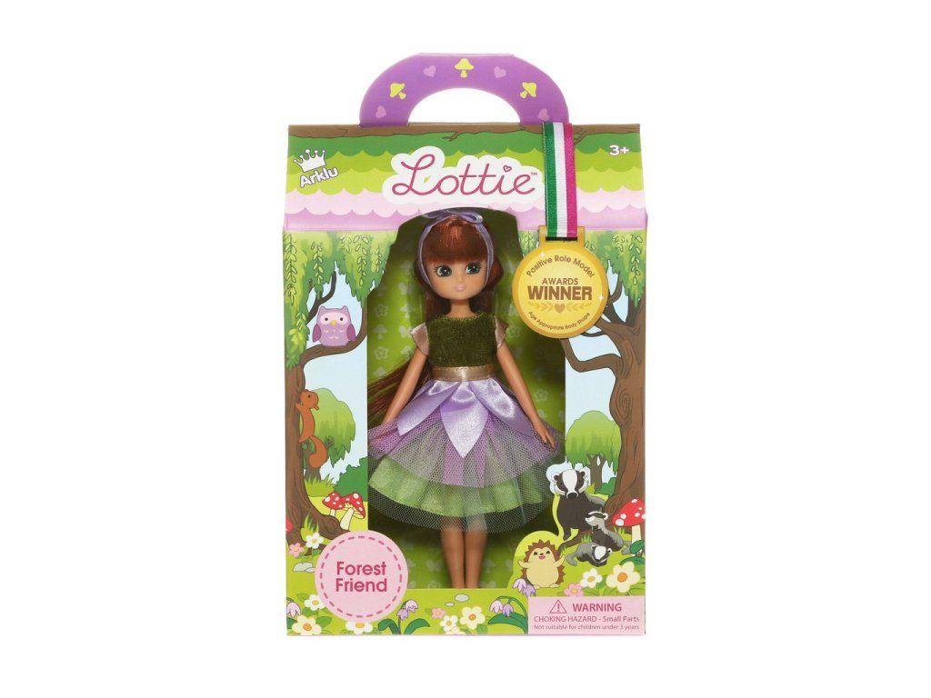 Lottie Bábika lesná víla Táto roztomilá bábika má oblečený zeleno-fialový kostým víly, ktorý sa skladá zo zamatového topu a tutu sukne, ktorá má pripomínať okvetné lístky. Na hlave má čelenku s mašľou a celý outfit dopĺňajú zlaté balerínky.Skvelý darček pre deti, ktoré milujú víly a iné fantasy postavy a predstavivú hru. Hlavné vlastnosti Kĺbová bábika s pohyblivými kolenami, perfektná pre predstavivú hruPrémiové nylonové vlasy sú hebké na dotyk a nezamotávajú saBábika z plastu bez ftalátov, mäkká na dotykBábika má odnímateľné topánky a stojí samostatneRyšavé vlasy, zelené očiMilované všetkými deťmi, vhodné od 3+ rokovMalá a roztomilá bábika vo veľkosti 18 cm Vďaka krásnemu farebnému boxu (s rukoväťou k jednoduchému prenosu) nepotrebuje táto bábika žiadny ďalší obal. Bola navrhnutá v Írsku a tiež vyhrala ocenenie za bábiku s mnohými detailmi, čo je dôležitého pre každého zberateľa. Lottie si rada pred spaním číta o magických lesoch, v ktorých hlbinách žijú záhadné víly. Lottie si predstavuje, aké by to bolo, keby v strome objavila tajné dvere víl... Možno by ju posypali svojím magickým prachom a jej sny by sa splnili? Všetky bábiky Lottie zodpovedajú testovacím standardám pre hračky EÚ, USA a Kanady.Dodatočné parametre