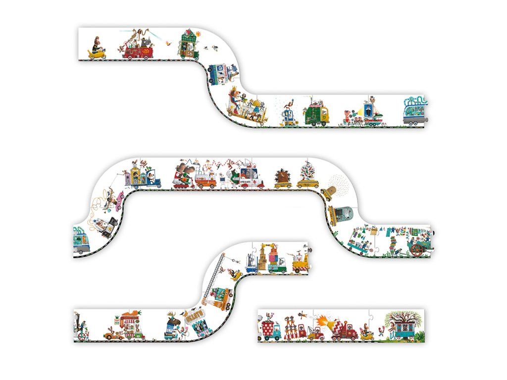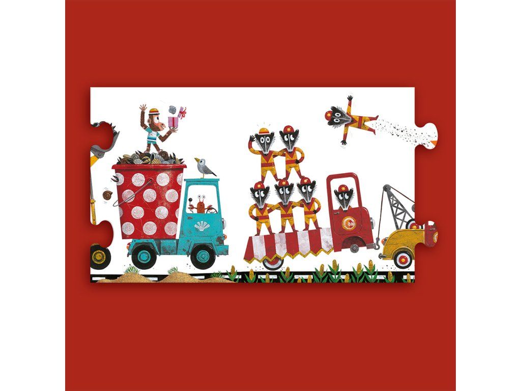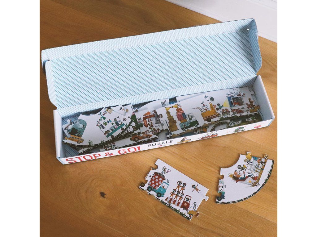 Od autobusu plného rýb až po včelí úľ na bicykloch! Táto dopravná zápcha dlhá 3 metre je vskutku veselá! Nápadité vozidlá so zvieratkami ilustrátora Leo Timmersa nadchnú určite každého. Skladanie častí puzzle podporuje koncentráciu, vizuálne myslenie a prináša pravdepodobne najbláznivejšiu dopravnú zápchu všetkých čias priamo do detskej izby! Hlavné vlastnosti: rozvíja predstavivosť a koncentráciuzlepšuje obratnosť a koordináciu ruka-okoDodatočné parametre