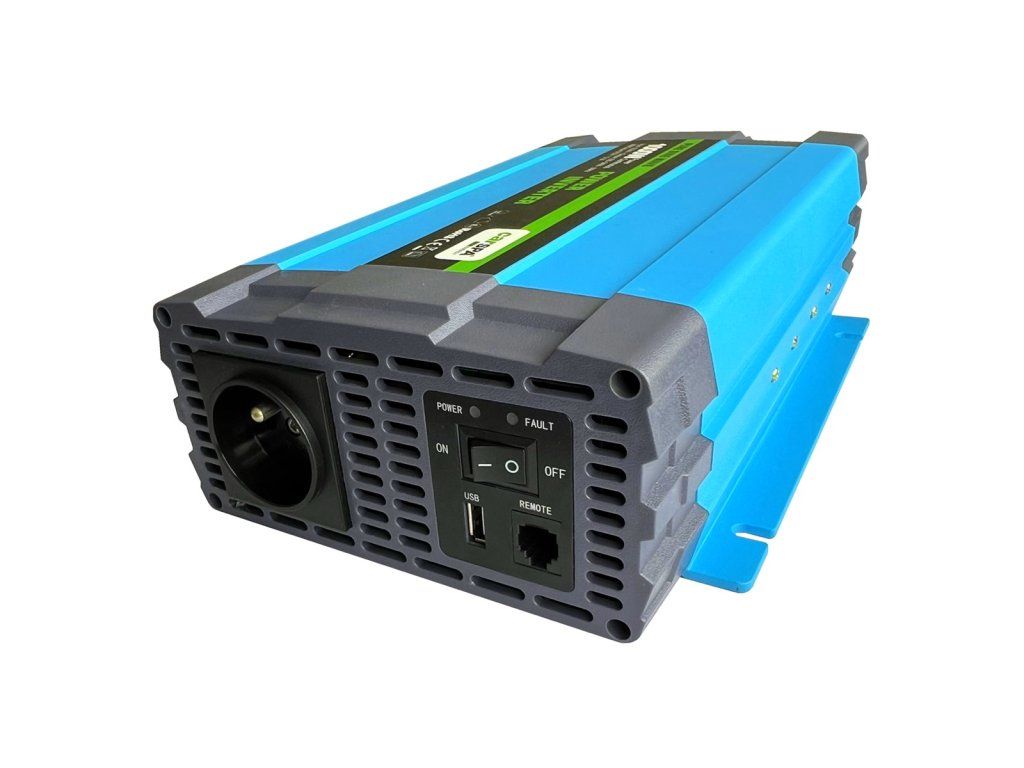 Měnič napětí Carspa P1000-12/24-25 - s čistou sinusovkou a s širokým rozsahem napájecího napětí 12–24V, nabízí vynikající kvalitu a skutečný sinusový výstup pro provoz Vašeho oblíbeného elektrické nářadí a jiných citlivých zatížení. Vhodný například pro napájení kamer, fotoaparátů, notebooků atd, také pro menší ruční nářadí.
