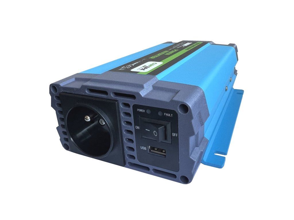Měnič napětí Carspa P500-12/24-25 - s čistou sinusovkou a s širokým rozsahem napájecího napětí 12–24V, nabízí vynikající kvalitu a skutečný sinusový výstup pro provoz Vašeho oblíbeného elektrické nářadí a jiných citlivých zatížení. Vhodný například pro napájení kamer, fotoaparátů, notebooků atd, také pro menší ruční nářadí.