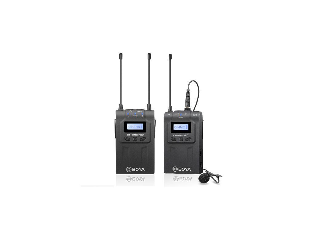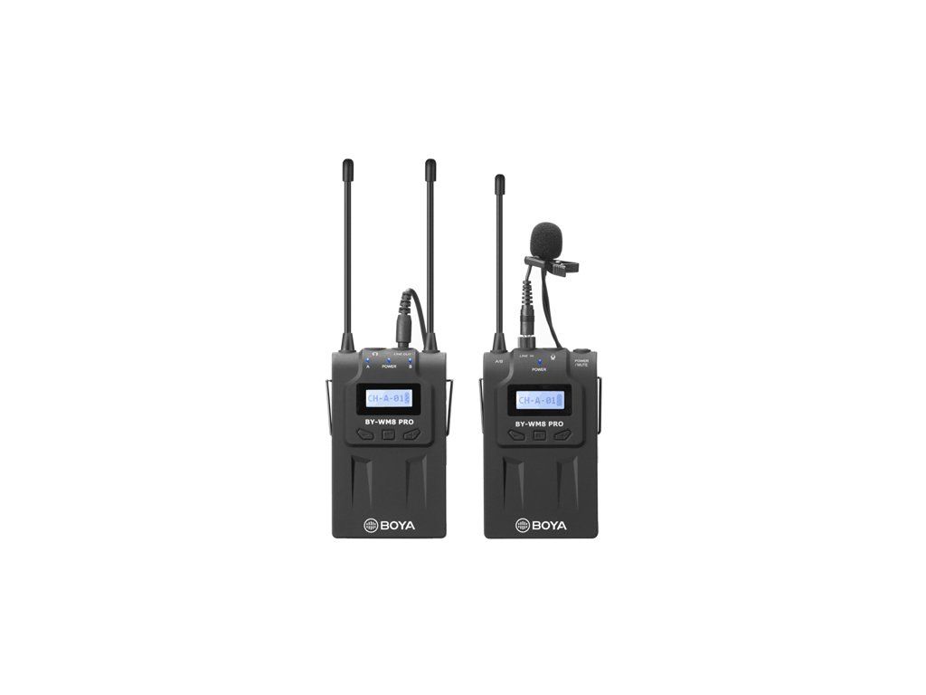 Bezdrôtový mikrofónny UHF systém Boya BY-VM8 Pro K1 využíva 48 kanálov v 2 skupinách a elektronické ladenie frekvencie pomocou PLL syntetizátoru. Skladá sa z vysielača TX8 Pro, z prijímača RX8 Pro a z lavaliérového mikrofónu s omnidirekcionálnym polárnym vzorom, ktorý prijíma zvuk rovnako kvalitne a s rovnakým ziskom zo všetkých strán, takže snímaný hlas znie stále čisto a prirodzene.