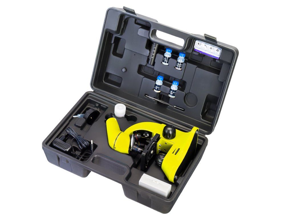 Mikroskop sa dodáva v plastovom tele. Vybavený dvoma LED osvetľovacími systémami. Hlava mikroskopu sklon 45 ° a je v rozsahu 360 ° otočná okolo svojej osi. Osvetlenie je možné napájať zo siete alebo batériami.