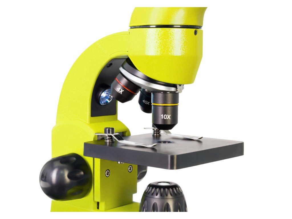 Mikroskop Levenhuk Rainbow 50L-zelený je ideálny pre začínajúcich výskumníkmi mikrosveta aj skúsených biológov. Umožňuje pozorovať a študovať dôverne známe objekty z nášho okolitého prostredia pri zväčšení 40x, 80x, 100x, 200x, 400x a dokonca 800x.Mikroskop je vybavený tromi objektívmi, ktoré ponúka zväčšenie 40x, 100x a 400x. Všetky optické prvky sú vyrobené z veľmi kvalitného, vysoko transparentného skla.