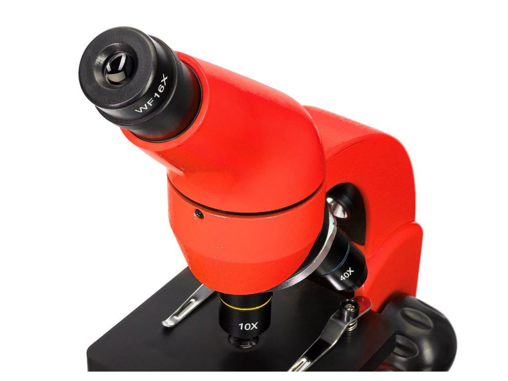 Mikroskop Levenhuk Rainbow 50L PLUS Orange je ideálny pre začínajúcich výskumníkmi mikrosveta i skúsených biológov. Umožňuje pozorovať a študovať dôverne známe objekty z nášho okolitého prostredie pri zväčšení 40x, 80x, 100x, 200x, 400x a dokonca 800x.Mikroskop je vybavený tromi objektívmi, ktoré ponúka zväčšenie 40x, 100x a 400x. Všetky optické prvky sú vyrobené z veľmi kvalitného, vysoko transparentného skla.