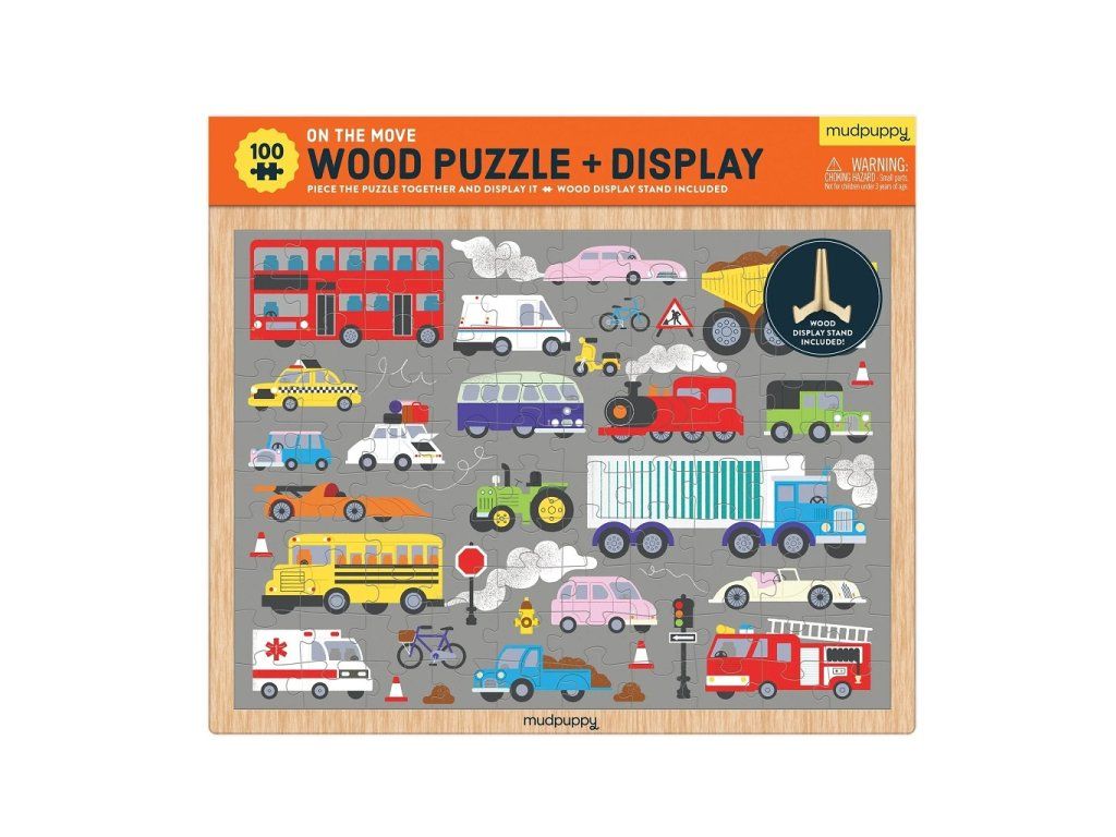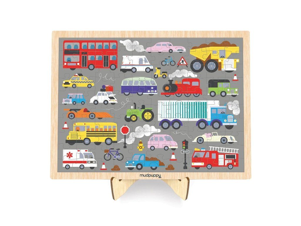 Mudpuppy Drevené puzzle Dopravné prostriedky + stojan 100 dielikov