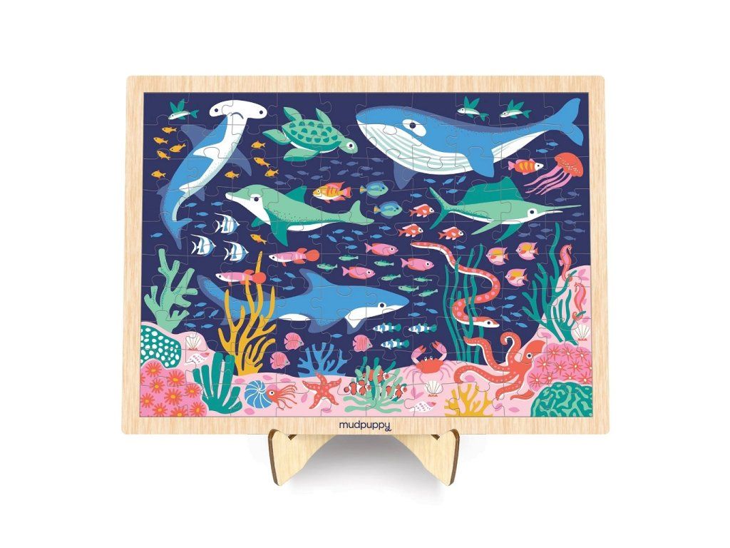Mudpuppy Drevené puzzle Život v oceáne + stojan 100 dielikov