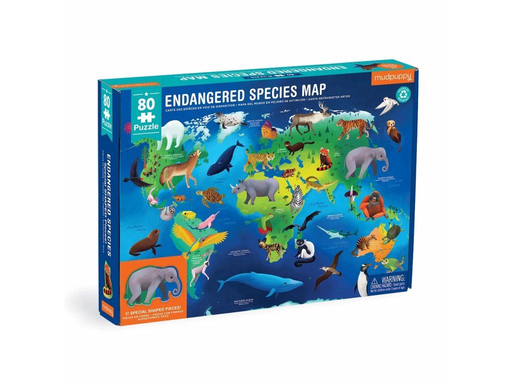 Mudpuppy Puzzle Ohrožené druhy zvířat celého světa 80 dílků Poškozený obal