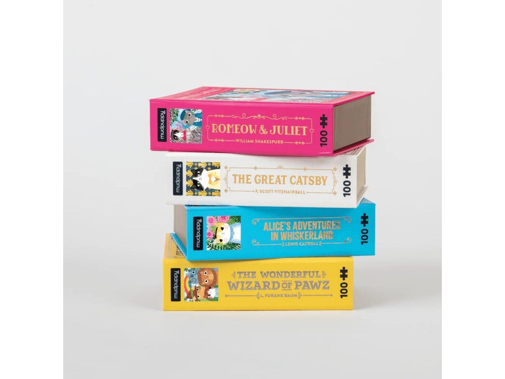 Romeow & Juliet Bookish Cats obsahuje rozkošný mačacie portrét Romea a Julie, inšpirovaného mačkami. Toto prémiové puzzle, ktoré je súčasťou série Bookish Cats, je zabalené v krabici v štýle knihy s magnetickým uzáverom. Škatule aj puzzle majú zlaté detaily. Skvelé na opätovné použitie a skladovanie. Ideálne ako darček. Autorom obrázku je Angie Rozelaar. Puzzle sú vyrobené za použitia významného podielu recyklovaného papiera a ponúkajú špičkovú potlač nezávadnými farbami. Sú opatrené matnou povrchovou úpravou, ktorá zaisťuje za všetkých okolností verné podanie detailov i farieb. Ich zadná strana je potiahnutá hladkým, na dotyk príjemným povrchom, vďaka ktorému sa pri skladovaní rozloženého puzzle netvorí prach. Spolu so starostlivo zabalenými dielikmi nájdete v balení aj letáčik s návodným obrázkom, ktorý spravidla obsahuje ďalšie informácie o tvorcoch a pozadí vzniku diela. Dodávané v mimoriadne pevnej a pútavo spracovanej kartónovej krabičke vyrobenej z recyklovaného kartónu. Hlavné vlastnosti: 100 precízne vyrezaných dielikovvyrobené s použitím recyklovaných a udržateľne získaných materiálovstarostlivo vybraný motív od renomovaných tvorcov a umelcovpotlač a prevedenie najvyššej kvalityobsahuje návodný obrázokDodatočné parametre