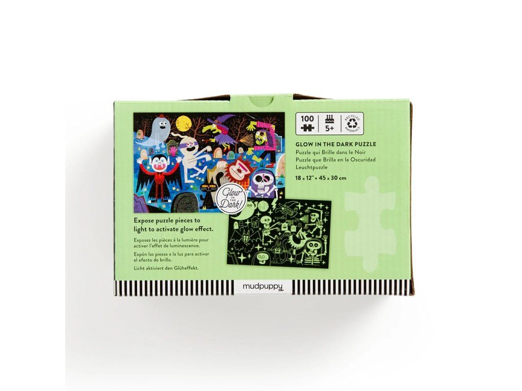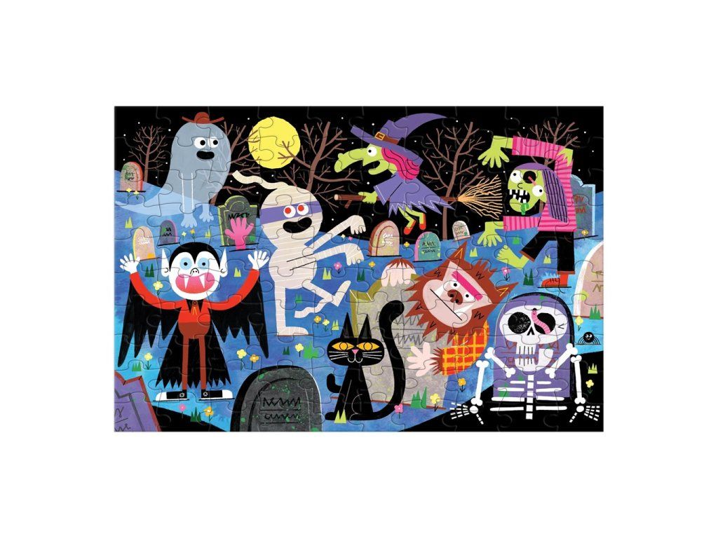 Máte radi strašidlá? Puzzle Strašidelný cintorín obsahuje všetky desivé halloweenske bytosti, ako sú čarodejnice, upíri, duchovia a múmie. Deti sa skvele pobavia pri skladaní tejto divokej scény a keď zhasnú svetlá, čaká ich veľké prekvapenie. Príšery a kostry svietia v tme! Dieliky puzzle sú pevné a odolné. Prevedenie puzzle v pestrých farbách deti zaujme a motivuje ich k hraniu bez obrazoviek. Skladanie rozvíja zručnosti v riešení problémov, priestorové uvažovanie a koordináciu ruka-oko, a to všetko zábavnou formou. Puzzle je vyrobené zodpovedne za použitia vysokého podielu recyklovaného materiálu (90% puzzle a 70% obal) s certifikáciou FSC® a je potlačené pestrými netoxickými farbami. Hlavné vlastnosti 100 dielikovsvieti v tmerozvíja priestorové uvažovanie a koordináciu ruka-okoodvedie pozornosť detí od obrazoviekvyrobené s použitím recyklovaných a udržateľne získaných materiálov s certifikáciou FSC®potlačené netoxickými farbamivhodné od 5 rokov Značka a certifikát FSC® (Forest Stewardship Council) zaručuje, že drevo, z ktorého bol výrobok vyrobený, nebolo vyťažené nelegálne a pochádza z lesov obhospodarovaných šetrným či prírode blízkym spôsobom, v ktorom sú dodržiavané prísne environmentálne a sociálne požiadavky. Značka FSC® na výrobku znamená, že svojim nákupom pomáhate chrániť lesy a podporujete šetrné, zodpovedné či prírode blízke hospodárenie, vďaka ktorému sú naše lesy stabilnejšie, zdravšie, majú prirodzenú druhovú skladbu a lepšie odolávajú negatívnym následkom klimatických zmien.Dodatočné parametre