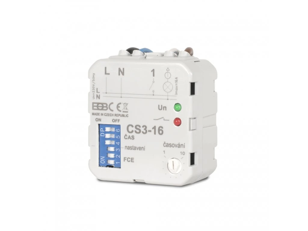 je multifunkčné časové relé pre ovládanie odporovej (žiarovky) a indukčnej záťaže (ventilátory) s možnosťou montáže POD VYPÍNAČ , spínacím prvkom je silové relé 16A.