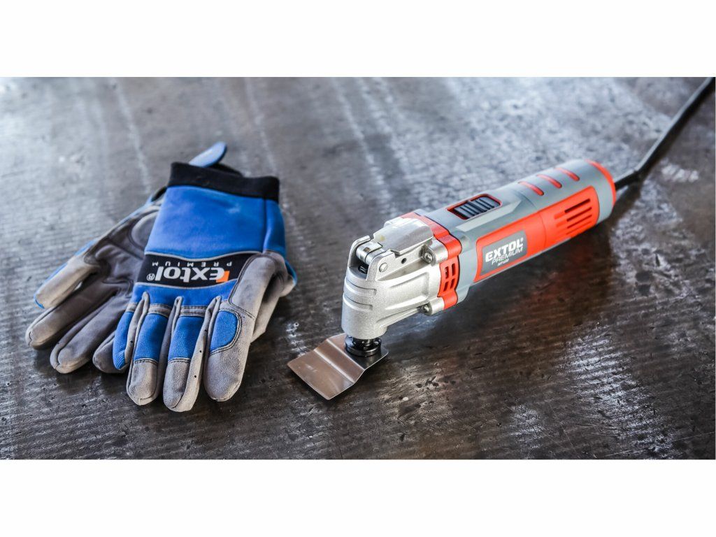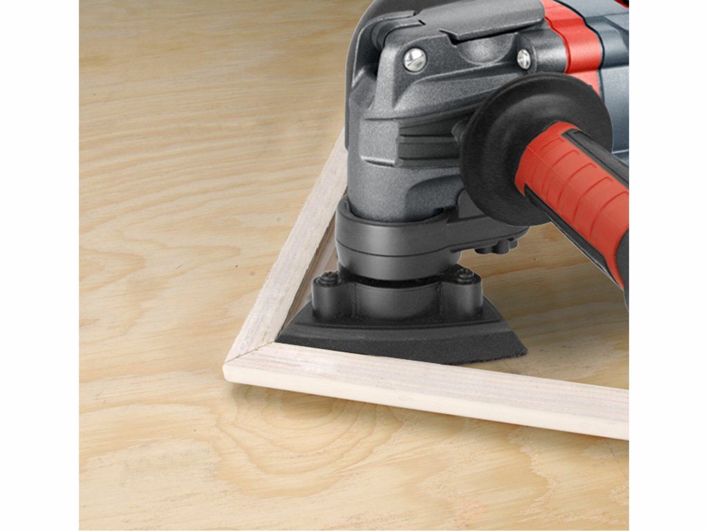 Multifunkčný oscilačný nástroj vhodný na pílenie a zarezávanie do dreva a kovov, umelej hmoty, sadrokartónu, obkladu, dlažby a stavebných materiálov, brúsenie dreva, kovu, plastov, farby, laku, malty a betónu, škrabanie lepidla, malty a farby. Systém beznástrojového rýchloupínania umožňuje rýchlu a nenáročnú výmenu pracovného nástroja. UPOZORNENIE: Rýchloupínací systém vyžaduje nástroje so zárezom v upínacej časti.- veľmi silný 400W motor a elektronický systém udržiavania stáleho výkonu dovolí pracovať rovnako efektívne pri nízkych ako aj pri vysokých otáčkach