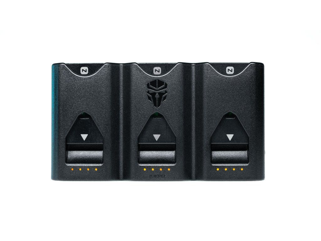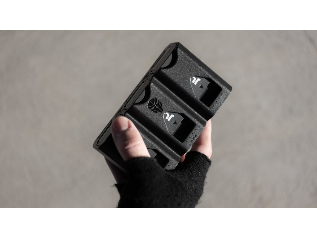 Nabíjačka Jupio Pr1me Gear Tri-Charge zvládne nabiť až 3 ks dobíjacích batérií k fotoaparátu. Nabíjačku je možné napájať cez USB port napríklad z počítača, notebooku alebo autonabíjačky. Nabíjanie batérií signalizujú 4 LED oranžové diódy. Na nabíjanie batérií pomocou Tri-Charge je vhodná akákoľvek nabíjačka USB-C alebo PD nabíjačka.