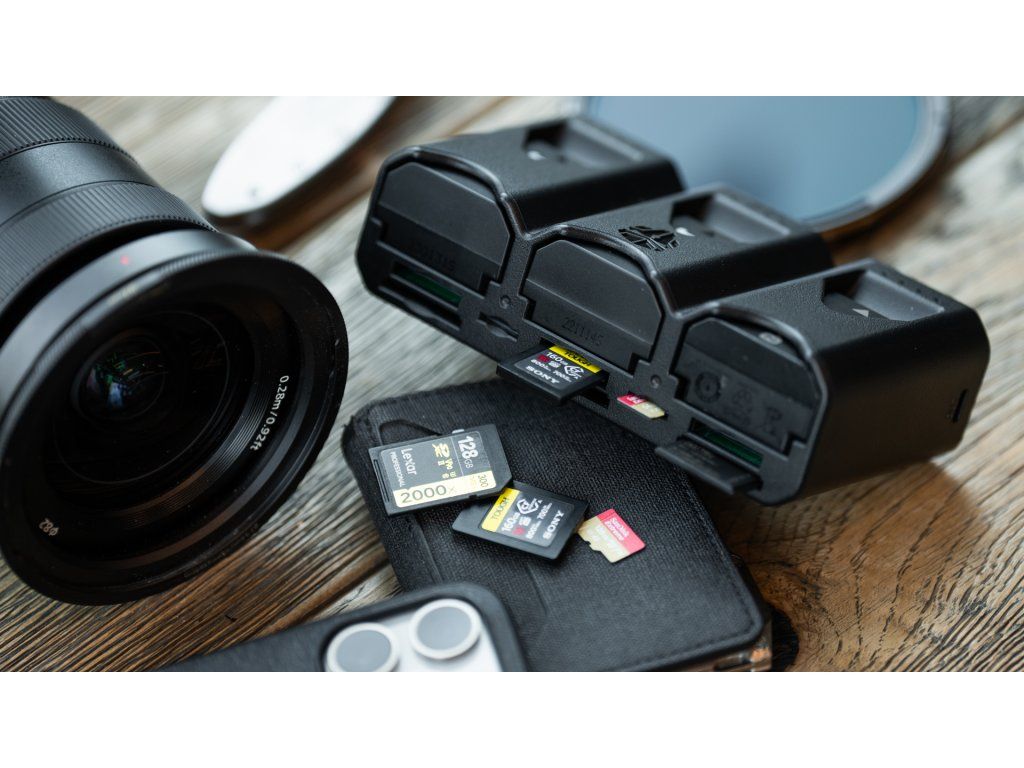 - Ochranné puzdro pre – 3ks batérií, 3x SD kartu, 2x microSD karu a 3x CFexpress kartu