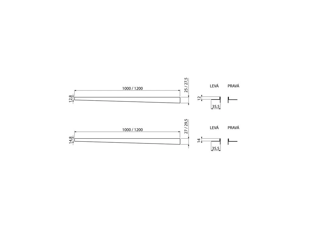Nerezová lišta pre spádovanú podlahu, výška lemu 12 mm, dĺžka 1200 mm, pravá