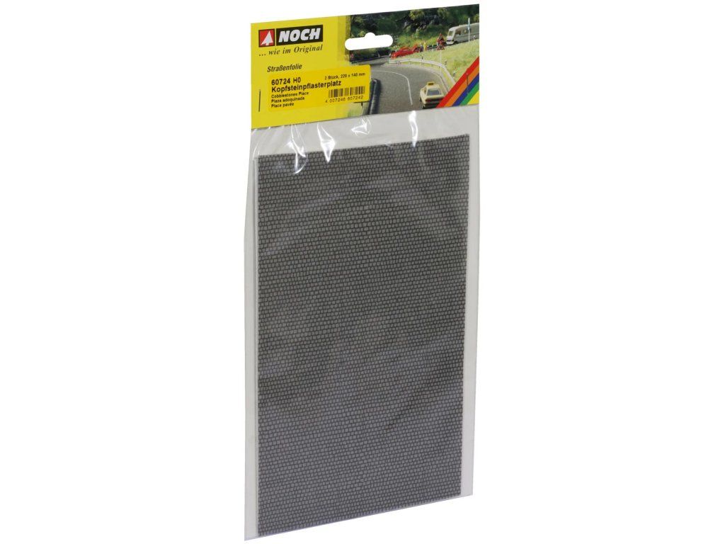 Dlažobné kocky sú ideálne na detailnejšie a malebnejšie stvárnenie krajinných scén. Námestie nájdete v rôznych prostrediach – či už na vidieku na návsi, alebo v meste na trhovisku – môžu byť veľmi rôznorodé a kreatívne upravené. Práve dlažobné kocky sa na to výborne hodia. V meste ožíva trhovisko za pekného počasia ruchom ľudí, na dedine si obyvatelia užívajú spoločné chvíle na dláždenom priestranstve. Vylepšite svoju modelovú krajinu vytvorením zaujímavých námestí, ktoré dodajú scéne život. Dlažobné kocky sa hodia aj na úpravu trhovísk, dvorov či príjazdových ciest. S pomocou praktických doplnkov, ako sú dláždené ulice a námestia, križovatky alebo parkoviská, je možné ulice i námestia rozmanito a realisticky upraviť. Samolepiaca cestná fólia umožňuje vďaka praktickým doplnkom, ako sú dláždené ulice a námestia, križovatky alebo parkoviská, pestré a realistické usporiadanie ulíc a priestranstiev. Hlavné vlastnosti: 2 ks v balenísamolepiacijedná sa o model, nejedná sa o hračkuvhodné od 14 rokovmierka H0Dodatočné parametre