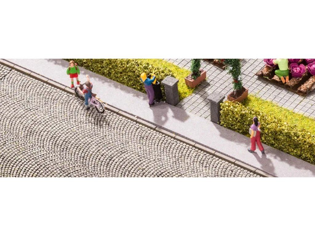 Štruktúrovaný povrch dlažobné kocky je ideálny pre realistické a detailné stvárnenie námestia v centrách miest, dedinských priestranstiev i obytných štvrtí. Povrch je vyrobený z prírodných surovín – kremenného piesku a kameného múčku, čo zaručuje prirodzený vzhľad a povrchovú štruktúru, vernosť prírode a vysokú odolnosť voči UV žiareniu. Štruktúrovaný povrch je prvou voľbou pre náročných modelárov. Ďalšou veľkou výhodou inovatívnej výrobnej technológie, ktorá využíva tenké nosné tkaniny a bezrozpúšťadlové spojivá, je vysoká pružnosť štruktúrovaných ciest. Hlavné vlastnosti: jedná sa o model, nejedná sa o hračkuvhodné od 14 rokovdofarbené ručnemierka H0Dodatočné parametre