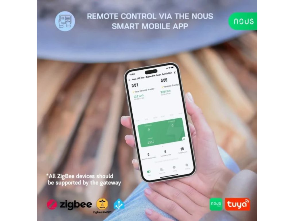 Inteligentné Ovládanie s Zigbee 3.0: Vďaka technológii Zigbee 3.0 sa modul ľahko integruje do vašej smart domácnosti. Ovládajte zariadenia na diaľku, vytvárajte automatizácie a scenáre, a využívajte hlasové ovládanie prostredníctvom bežných Zigbee hubov a aplikácie NOUS Smart. Podpora Zigbee2MQTT* zabezpečuje flexibilnú kompatibilitu.