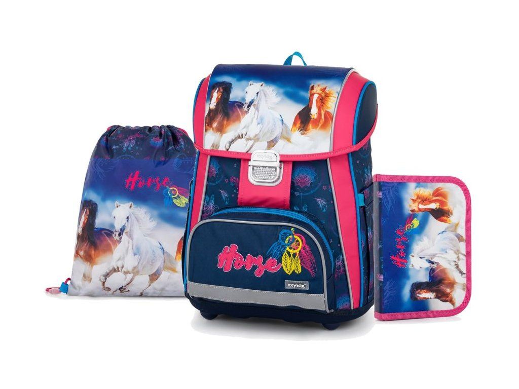 Set obsahuje školní batoh Premium, pytlík na cvičky a nenaplněný jednopatrový penál. Aktovka: Ideální pro prvňáky a druháky: Navržena pro děti s výškou od 123 cm. Lehká a bezpečná: S nízkou hmotností pouhých 1100 g a reflexními prvky je tato aktovka nejen praktická, ale také bezpečná. Ergonomicky dokonalá: Anatomicky tvarovaná záda, polstrování z příjemného prodyšného materiálu a měkčené, široké ramenní popruhy zajišťují dokonalé a pohodlné nošení. Zdravotní výhody: Fyzioterapeut doporučuje aktovku pro její schopnost udržovat stálý tvar a správné rozložení hmotnosti, čímž chrání záda vašeho dítěte. Detaily, které mají význam: Hlavní komora s vnitřní kapsou, jmenovkou a rozvrhem hodin pro lepší organizaci. Nastavitelné ramenní a hrudní popruhy pro optimální přizpůsobení dětské postavě. Pevné nepromokavé dno s nožičkami zajišťuje stabilitu a dostatek úložného prostoru. Přední kapsa je ideální pro svačinový box a boční otevřené kapsy poskytují dostatek místa pro všechny školní doplňky. Pytlík na cvičky: z kvalitního 100% polyesteru uzavírá se stažením šňůrek vhodný do školy, na sport a další volnočasové aktivity Penál: jednopatrový školní penál se dvěma chlopněmi bez náplně gumová poutka k uchycení psacích potřeb na vnitřní chlopni je průhledná fólie pro rozvrh hodin Hmotnost aktovky: 1,1 kg Nosnost aktovky: 8 kg Objem aktovky: 28 l Rozměry aktovky: 35 x 31 x 18 cm Rozměry pouzdra: 14 x 21 x 4,5 cm Rozměry vaku na záda: 30 x 37 cmDodatočné parametre