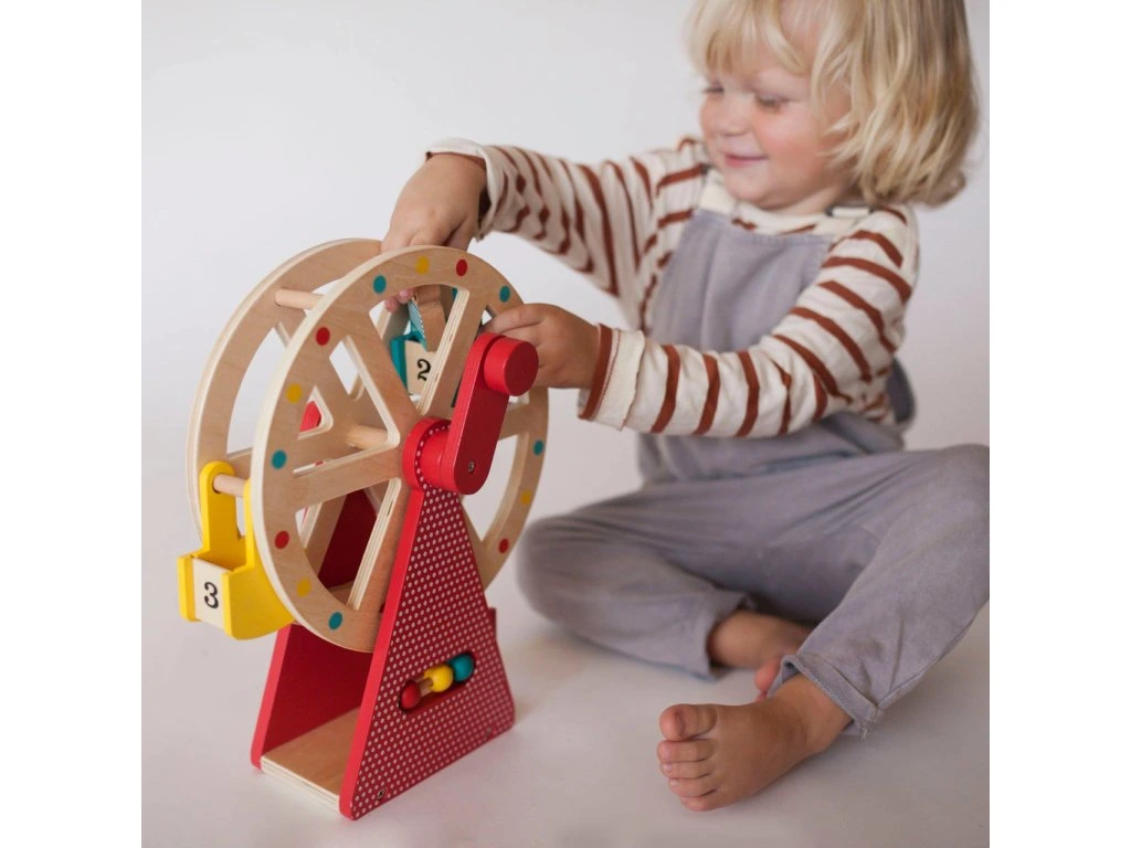 Poškodený obal. Nový tovar bez závad. Vezměte své tři zvířecí přátele na projížďku na tomto krásně navrženém a stylovém dřevěném ruském kole. Otočte rukojeť a sledujte, jak se točí velké kolo! Použijte přiložené počítadlo například k počítání jízd. S rotujícím dřevěným ruským kolem se třemi vozíky a třemi zvířecími kamarády z bukového dřeva si užijete spoustu zábavy. Hlavní vlastnosti: Předem smontované a kvalitní dřevěné ruské kolo se otáčí pomocí klikyObsahuje tři zvířecí kamarády z bukového dřevaRobustní dřevěná konstrukce kola je malována netoxickými barvami na vodní báziStylová hračka a krásný dekorační prvek v každém dětském pokojiSplňuje všechny bezpečnostní normyDodatočné parametre