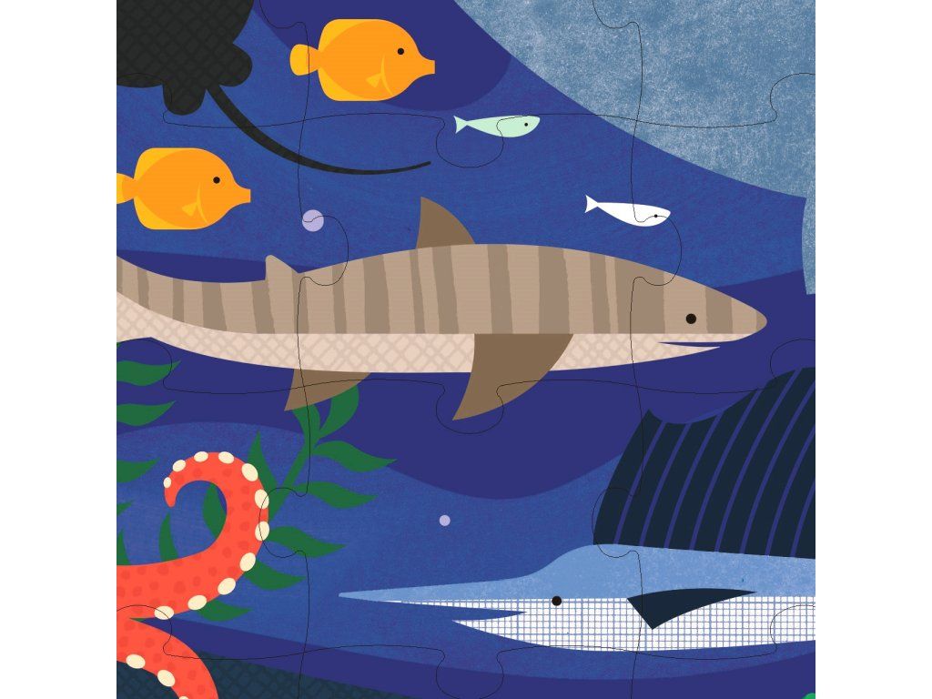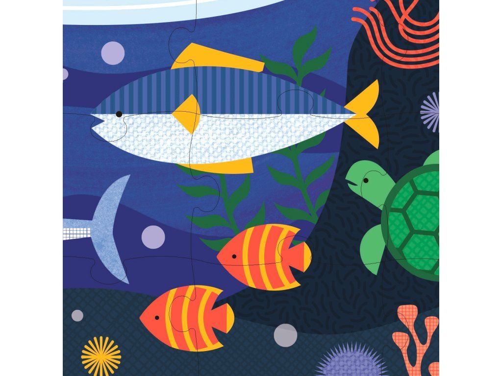 Podmorské puzzle má 49 dielikov a je obojstranné. Koľko živočíchov dokážete rozpoznať? Obojstranné puzzle má 2 unikátne designy, dvojitá zábava! Puzzle je zabalené vo vrecúšku s pútkom z látky zo 100% recyklovaného polyesteru. Je tak vhodné aj na cesty. Puzzle z FSC papiera je natlačené farbami vyrobenými zo zeleniny. Hlavné vlastnosti: obojstranné puzzlezabalené v eko vrecúšku s pútkompuzzle natlačené prírodnými farbamivhodné na doma aj na cestybalené bez použitia plastuvhodné od 5 rokov Značka a certifikát FSC® (Forest Stewardship Council) zaručuje, že drevo, z ktorého bol výrobok vyrobený, nebolo vyťažené nelegálne a pochádza z lesov obhospodarovaných šetrným či prírode blízkym spôsobom, v ktorom sú dodržiavané prísne environmentálne a sociálne požiadavky. Značka FSC® na výrobku znamená, že svojim nákupom pomáhate chrániť lesy a podporujete šetrné, zodpovedné či prírode blízke hospodárenie, vďaka ktorému sú naše lesy stabilnejšie, zdravšie, majú prirodzenú druhovú skladbu a lepšie odolávajú negatívnym následkom klimatických zmien.Dodatočné parametre