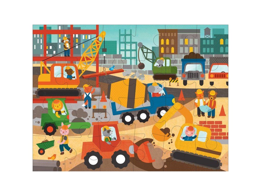 Poškodený obal. Nový tovar bez závad. Veľké 24-dielne podlahové puzzle pre malé deti Stavba v meste s motívom stavby a stavebných strojov ako je bager, žeriav, domiešavač... Puzzle je detailne a krásne ilustrované. Balené v kufríku s mäkkým bavlneným lanom. Vhodné pre deti od 3 rokov. Hlavné vlastnosti: V praktickej krabici je uložených 24 dielikovRozmer: 61x46cmPuzzle je vyrobené z recyklovaného kartónu a tlačené s rastlinnými atramentmiSpĺňa všetky požiadavky na bezpečnosť hračiekDodatočné parametre