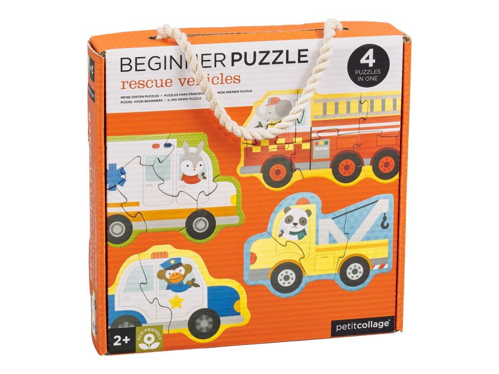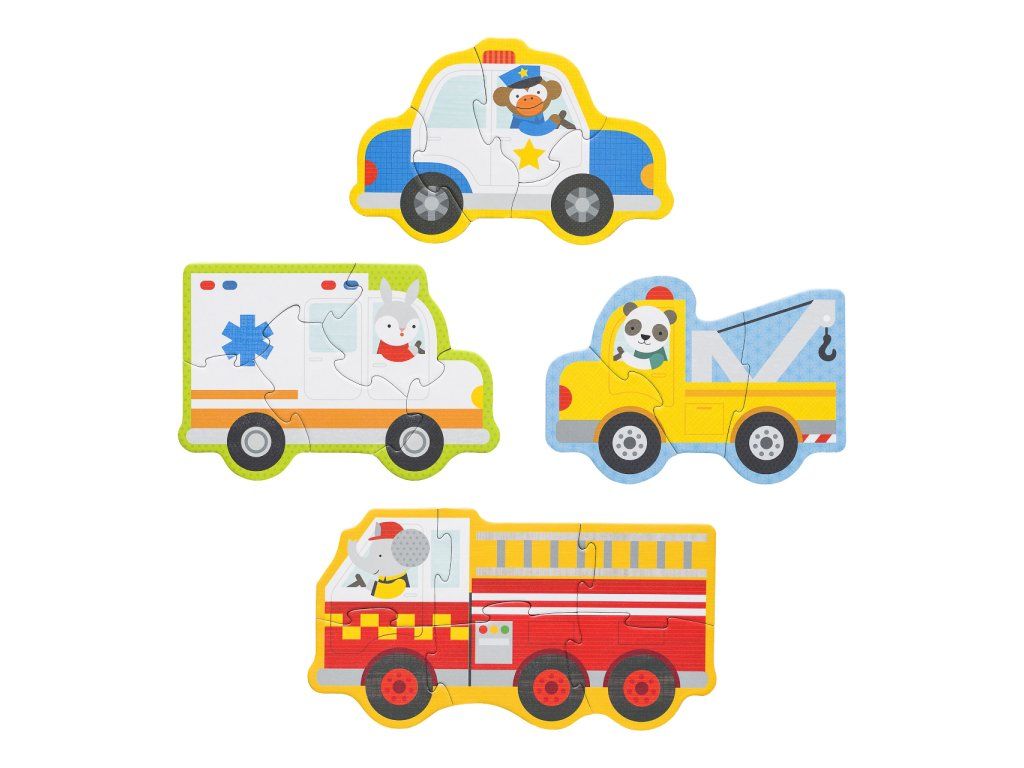 Puzzle, kde králik riadi sanitku, opica policajné auto, slon hasičský voz a panda odťahovku? To sú skladačky o 3, 4, 5 a 6 kusoch. Sada puzzle obsahuje 4 motívy záchranných vozidiel. Vyrobené z recyklovanej lepenky a potlačené rastlinnými farbami. Hlavné vlastnosti: 4 motívy záchranných vozidiel Vyrobené z recyklovanej lepené a potlačené rastlinnými atramenty Úložný box pre ľahké uschovanieDodatočné parametre